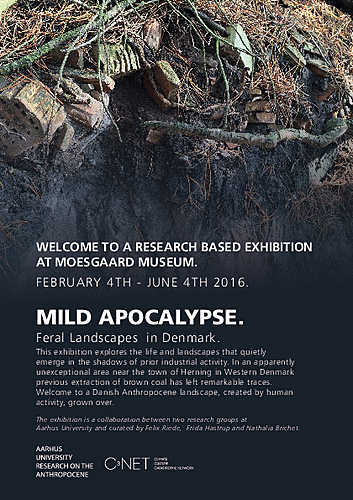 2016 saw the establishment of research collaboration between AURA, C3NET, an FKK-funded archaeological research project at Aarhus University, and Natural Goods, an FKK-funded research project at the Saxo Institute in Copenhagen. The exhibition "Mild Apocalypse" at Moesgaard Museum, the first outcome of this collaborative which opened on February 4, explored the human-shaped landscape of the former brown coal extraction site at Søby. The intention of the exhibition was, using archaeological and anthropological methods, to highlight that apocalypse can take many forms and the Anthropocene is also made up of unspectacular and ‘mild’ cases of human disturbance. What implication, the exhibition asked, does it have for policy and for the prospects of global action that we in the Global North often are shielded from the worst effects of anthropogenic changes to the planet, and tend only to experience the ‘mild’ dimensions of the Anthropocene?